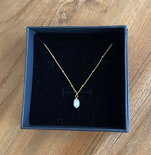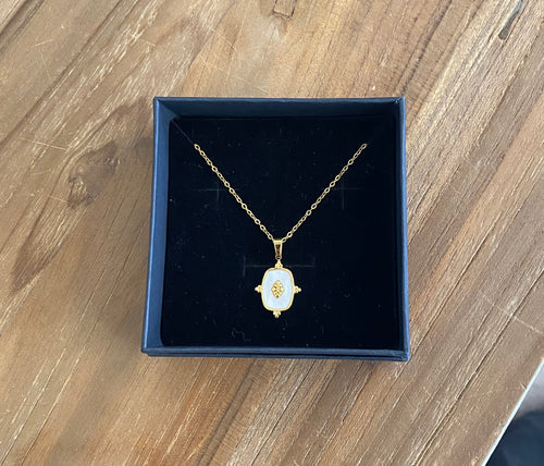 Elegant 18k Gold Plated Rectangle Tile Necklace – Mother of Pearl Detail
