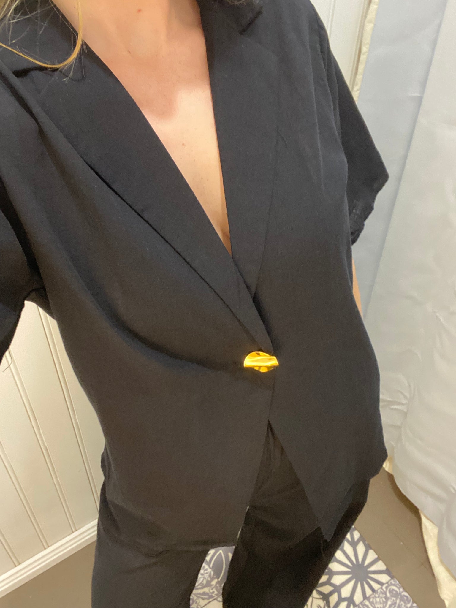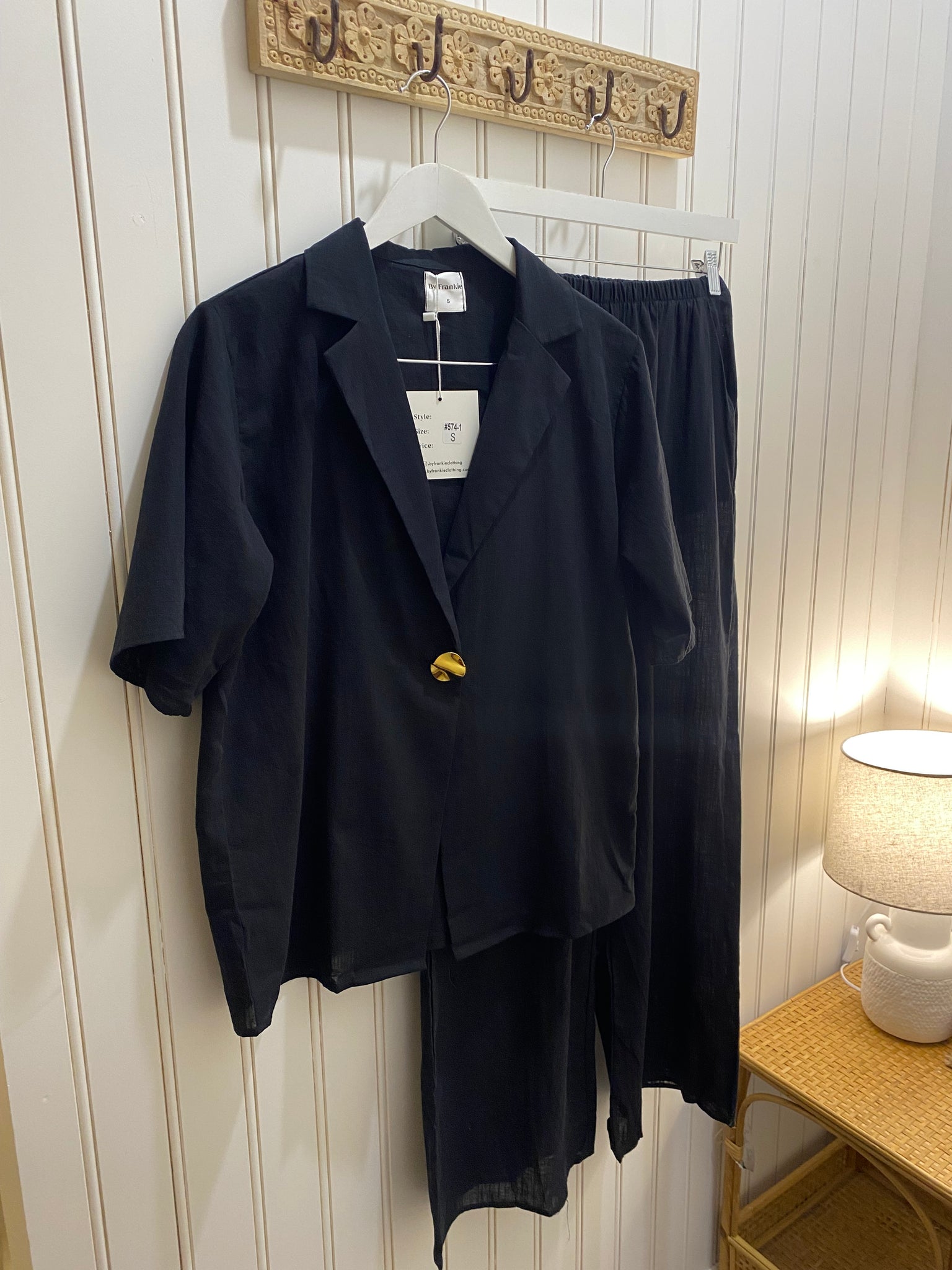 Turn everyday dressing into a statement with our elegant 2-piece Button Set, classic black. Designed for ease and impact, this set blends modern tailoring with elevated comfort—perfect for workdays, weekends, or dressed-up dinners.