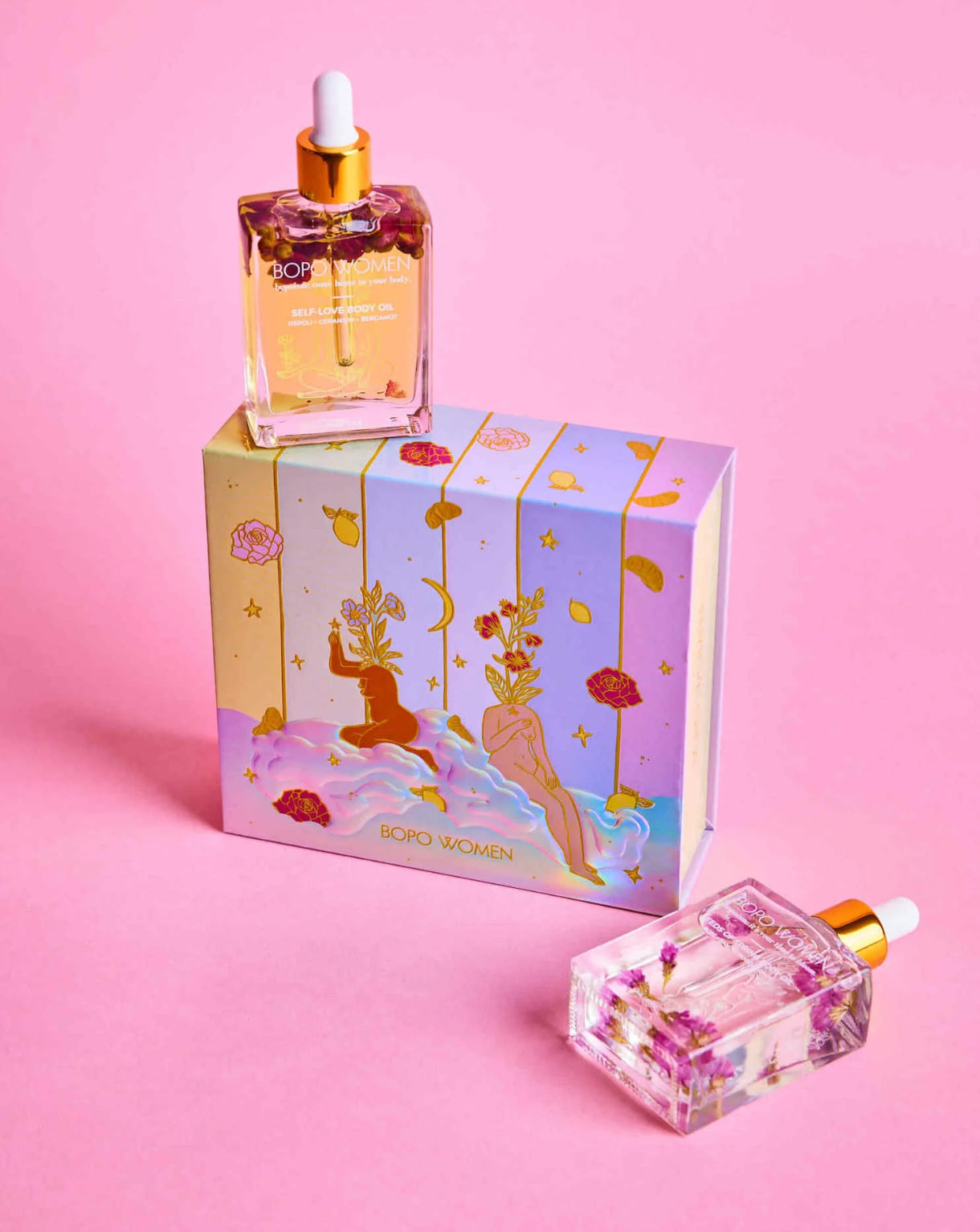 The perfect duo set for the skincare lover, starring two nourishing flower-infused body oils. Our Mini Seeds of Spring Body Oil is infused with hand-picked florals and features a nourishing blend of fragrant essential oils. Let rose top notes and grounding sandalwood base notes transport you to flower fields, while deeply hydrating your skin. Our Mini Self-Love Body Oil combines geranium, bergamot, mandarin & neroli essential oils to infuse the skin with vitamins, fatty acids and antioxidants. The perfect gift for someone special, your bestie or for yourself - because we could all use a little more self-love in our lives.