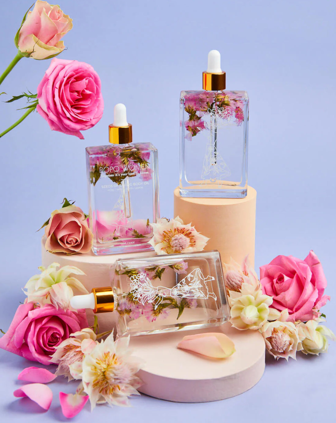 Our all natural Seeds of Spring Body Oil features a nourishing blend of fragrant essential oils. Let floral rose top notes and the grounding base notes of sandalwood transport you to the beauty of Mother Nature awakening from her slumber after a long, cold Winter. It's your time to bloom. Please Note: our flower bunches are hand dried and then picked by our amazing warehouse staff so due to seasonality flower colour may vary.