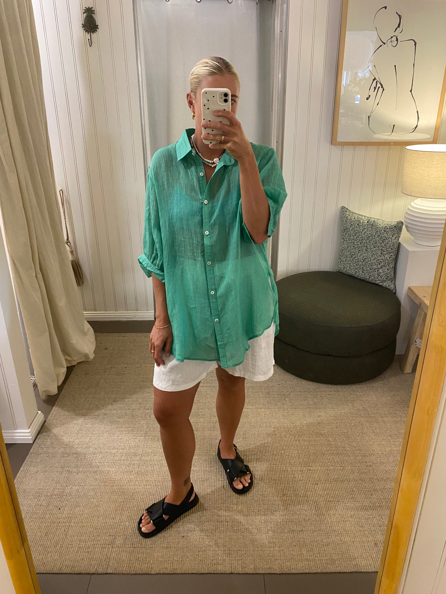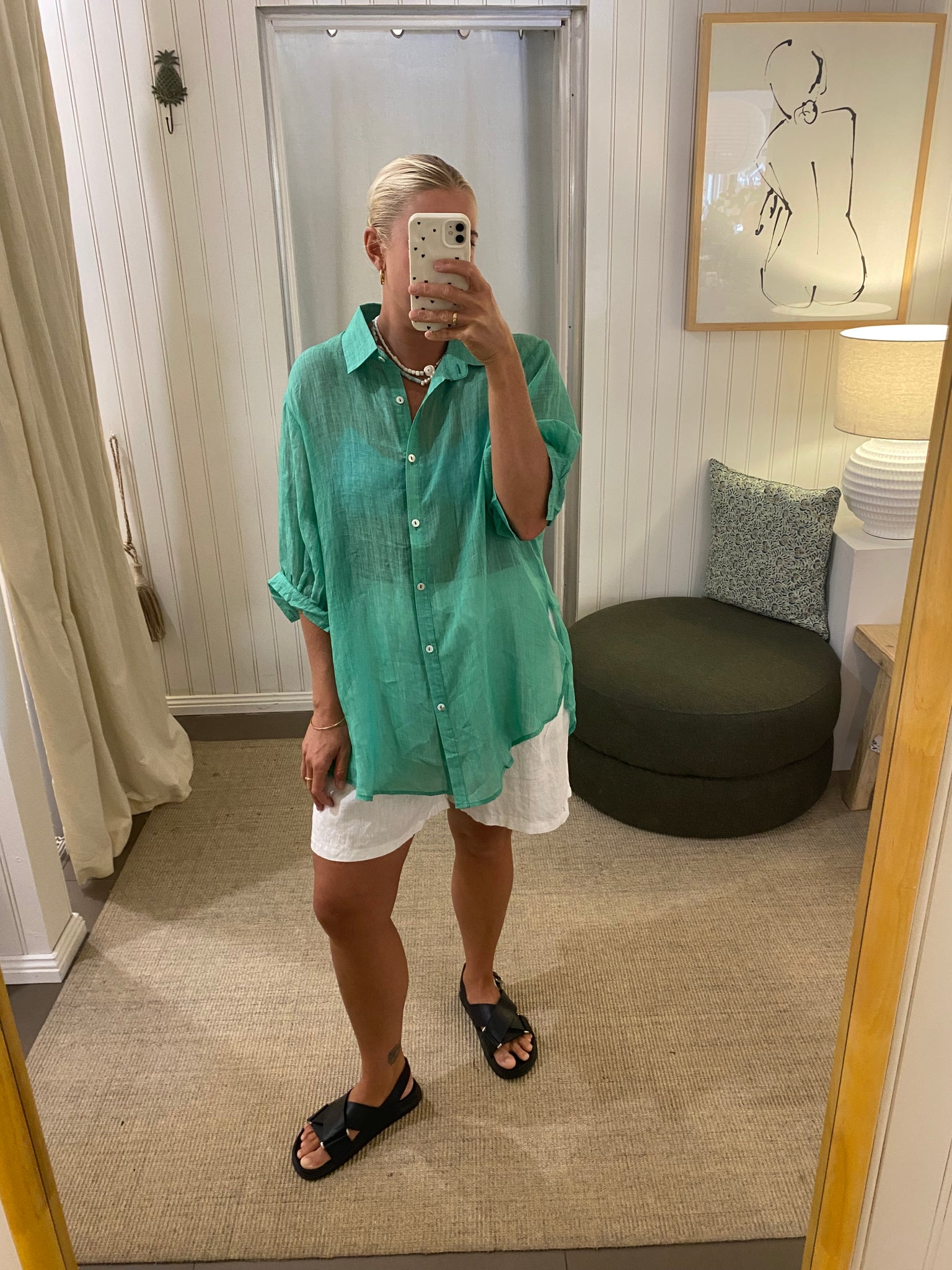 The soft green shade offers an understated statement—perfect for effortless styling from day to evening.
